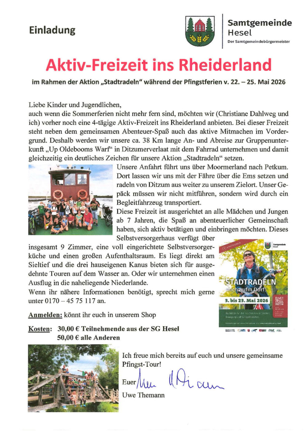 Für weitere Fragen und Informationen stehen Ihnen meine Mitarbeiterinnen und Mitarbeiter gerne zur Verfügung. Lernen Sie unsere Samtgemeinde mit ihrer abwechslungsreichen, sehr reizvollen landschaftlichen Prägung und ihren liebenswerten Menschen näher kennen, es lohnt sich.