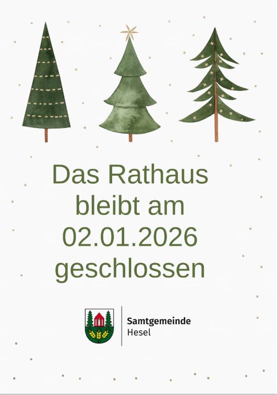 Für eine rechtzeitige Abrechnung der angebrachten Zwischenzähler ist der Zwischenzählerstand für 2025 schriftlich oder Online bis zum 18.12.2025 beim Steueramt der Samtgemeinde Hesel einzureichen. Die elektronische Einreichung des Antrages per E-Mail an l.kulessa@hesel.de.de ist ebenfalls möglich.