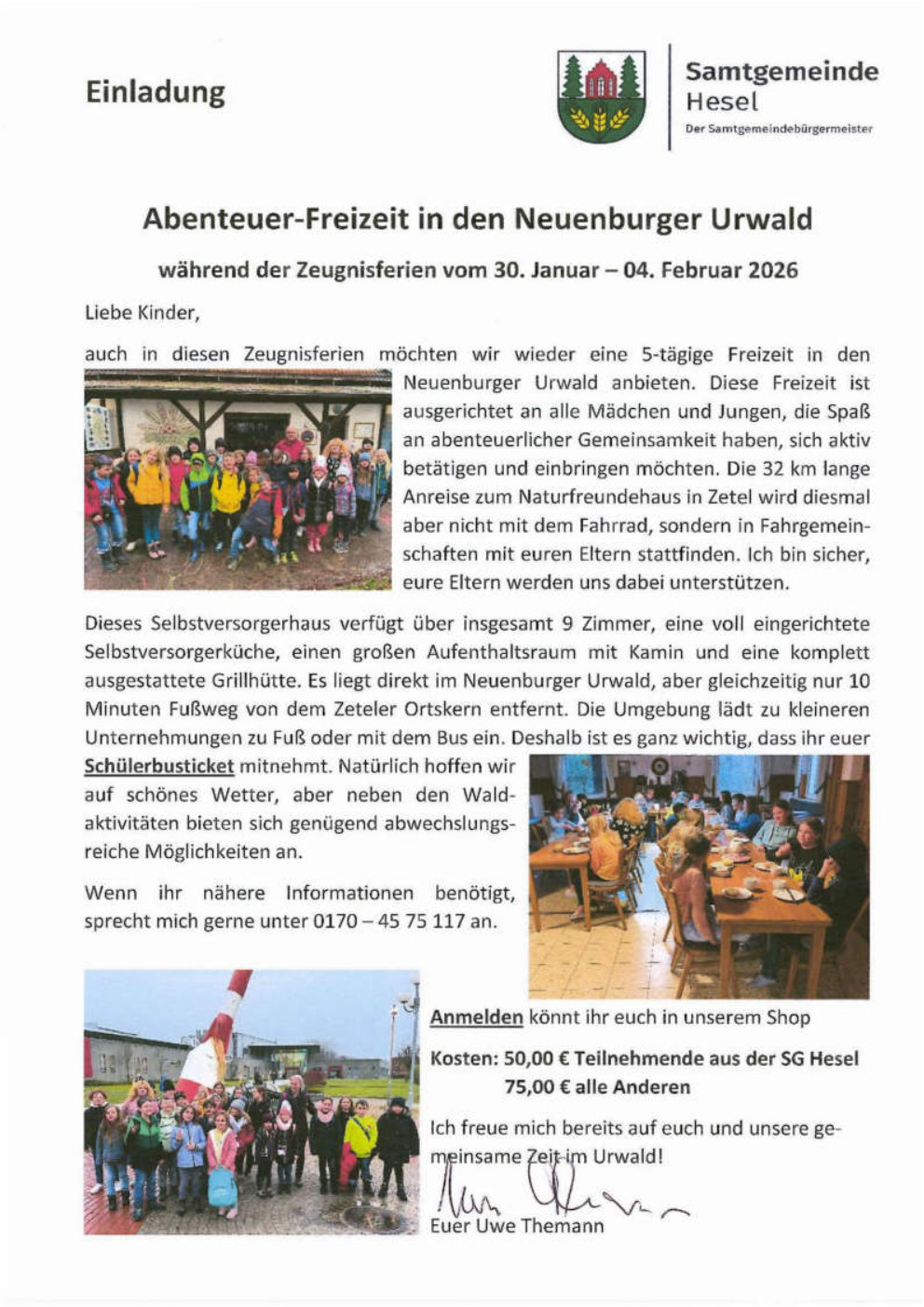 Für weitere Fragen und Informationen stehen Ihnen meine Mitarbeiterinnen und Mitarbeiter gerne zur Verfügung. Lernen Sie unsere Samtgemeinde mit ihrer abwechslungsreichen, sehr reizvollen landschaftlichen Prägung und ihren liebenswerten Menschen näher kennen, es lohnt sich.